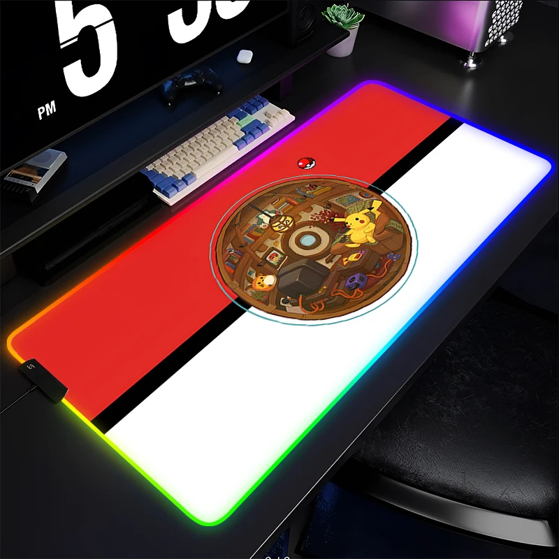 RGB Rubber Mouse Pad Gamers Large Computer Extended HD Print LED P-Pokemon Pikachu Mousepad Desk Mat Keyboard Backlight Carpet