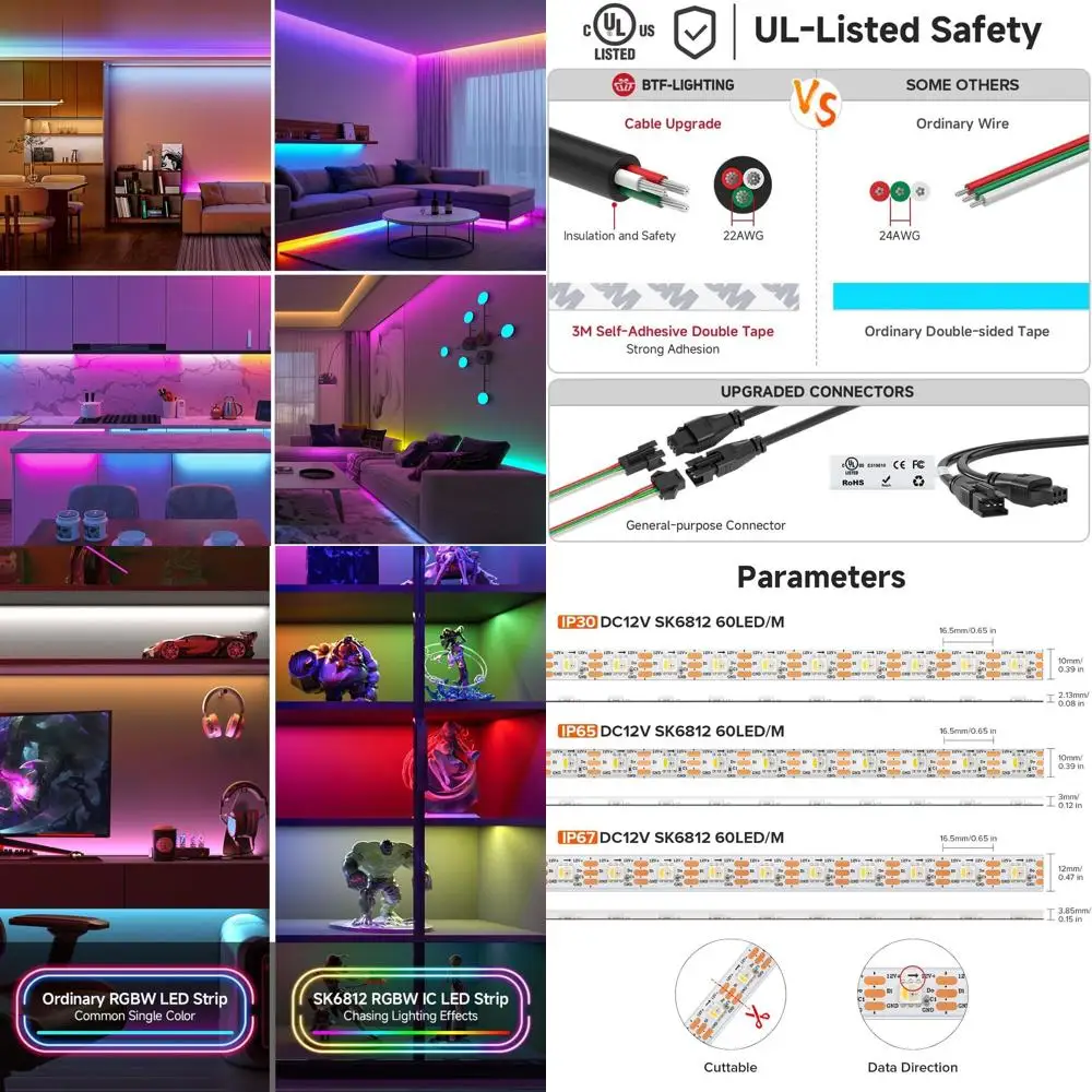RGBW LED Strip, 60 LEDs/Meter, 16.4FT, 12V, Individually Addressable, IP30, White PCB, No Adapter/Controller