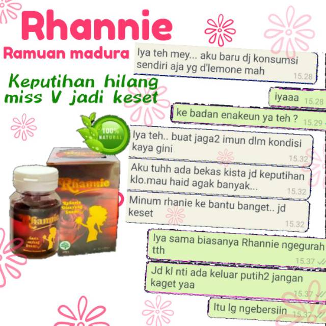 Para istri tidak perlu lagi therapy Miss V tapi cukup dengan konsumsi *Rhannie* secara rutin khasiatnya akan terasa seketika.