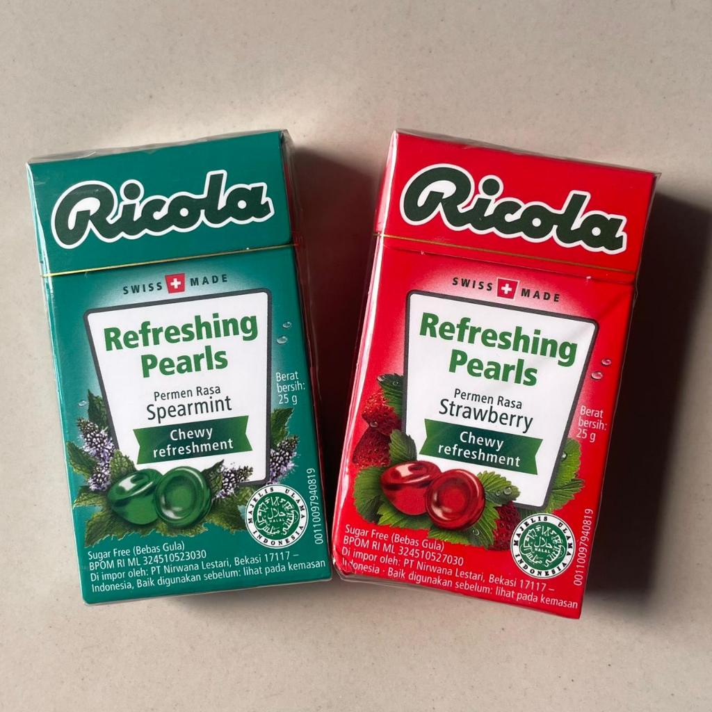 RICOLA PEARLS PERMEN MINT 25 GRAM PERMEN SWISS RICOLA SPEARMINT STRAWBERRY