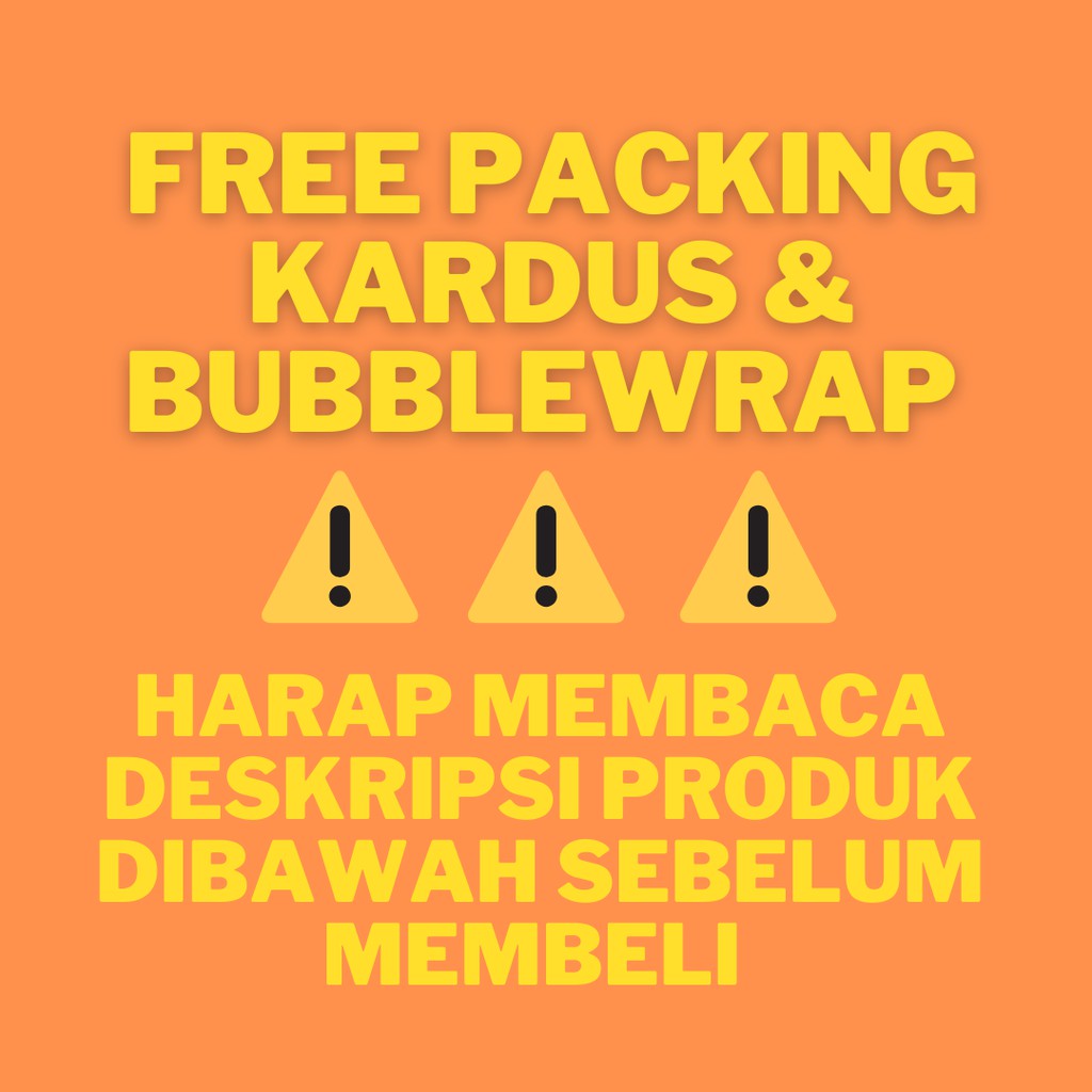 - Packing sudah GRATIS dengan bubblewrap dan kardus ditambah lakban fragile, pembeli tidak perlu membeli tambahan/extra packing. Kecuali untuk pengiriman SAMEDAY/INSTANT jika memungkinkan hanya akan dikemas menggunakan plastik untuk memudahkan driver membawa paket.