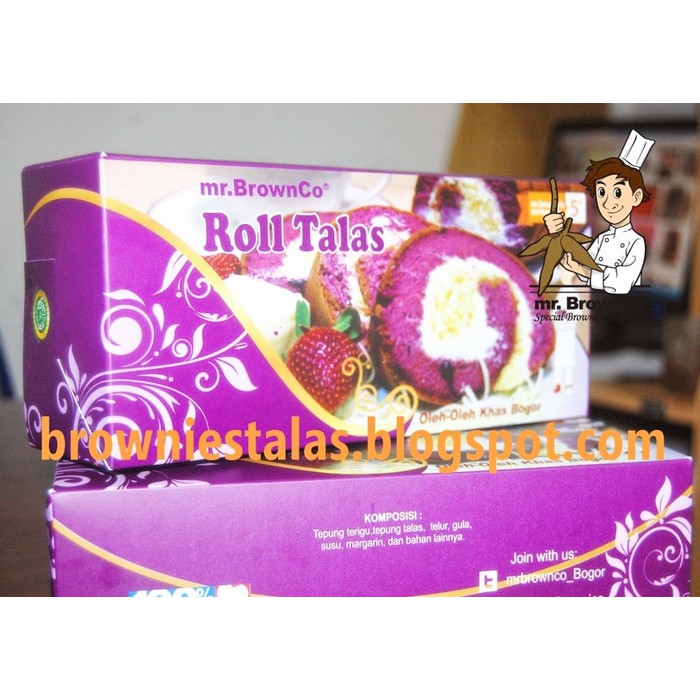 Salah satu produk lainnya mr.BrownCo Warna ungu yang ada pada roll ini terbuat dari saripati Talas dengan tambahan keju di dalamnya, yang pasti membuat lidah anda bergoyang. Udah gak asing lagi dong sama 'Talas' oleh-oleh khas bogor yang sudah terkenal dimana-mana ini, sekarang ini udah banyak banget olahan makanan berbahan talas. Salah satunya cake Roll Talas Keju by mr.BrownCo yang satu ini, kebanyakan cake yang orang-orang buat mungkin dalam bentuk persegi, tapi di mr.BrownCo ini kita membuat inovasi baru yaitu dengan cara di gulung, kenapa kita lebih memilih digulung? karna supaya dapat menarik banyak minat konsumen, yuuk segera icip-icip cake Roll Talas Keju by mr.BrownCo yang satu ini, cake dengan tekstur yang lembut dipadu dengan isian cream dan keju membuat rasa cake yang satu ini nagih banget deh.
