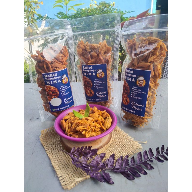 ROLLED DUMPLINGS MIMA, Makanan ringan yang di buat dari kulit lumpia, dan bumbu rahasia yang enk dan gurih.