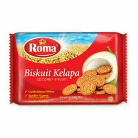 Roma Biskuit Kelapa adalah biskuit kelapa dengan rasa renyah dan gurih yang dihasilkan dari kelapa pilihan. Rasa kelapa asli dari Roma biskuit ini telah menjadi kesukaan banyak orang, baik di Indonesia atau pun di berbagai negara lain. Diperkaya dengan vitamin B1, B2, B6, B12, dan E, serta kalsium, biskuit Roma Kelapa ini akan menjadi teman biskuit kelapa yang sehat untuk Anda. Jalani hari-hari bersama kerenyahan biskuit Roma Kelapa, teman yang baik untuk Anda.