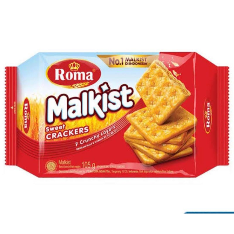 Roma Malkist Crackers Gula merupakan varian crackers dari brand Roma produksi PT. Mayora Indah Tbk. crackers renyah dengan taburan gula manis di atasnya, mengandung vitamin B1, B2, B6, B12 yang dapat memenuhi kebutuhan energi tubuh.