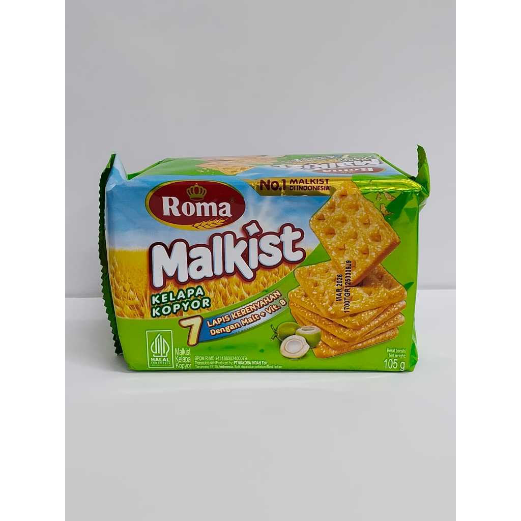 Roma Malkist Kelapa Kopyor adalah biskuit cracker tipis dari PT Mayora Indah Tbk, dengan rasa kelapa kopyor yang gurih dan tekstur renyah, dikemas dalam ukuran 105 g. Produk ini sudah terdaftar resmi di BPOM hingga 26 Februari 2028 serta bersertifikat halal