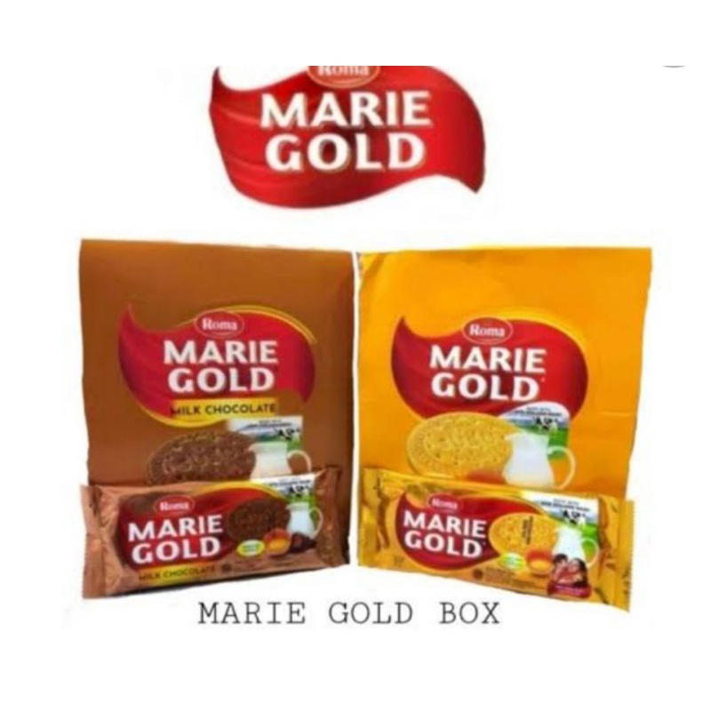 Roma marie gold box tersedia 2 rasa,,,marie susu gold original dan marie susu gold coklat,,,1 box isi 12 bungkus,,,,marie susu gold praktis dan enaaaakkkk ,,,,yuk di order