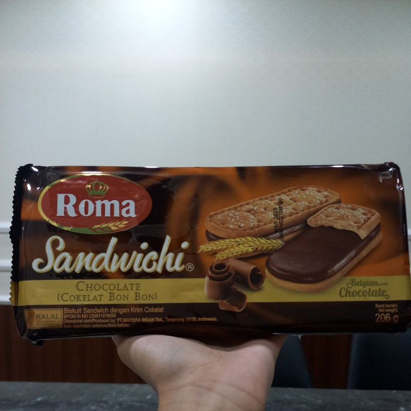 Satu lagi dari Mayora, perusahaan asal Indonesia yang produk-produk nya udah mendunia. Yupp, Akang Teteh pastinya tau dong sama Mayora, perusahaan yang udah banyak menghasilkan produk-produk unggulan asal Indonesia. Akang Teteh pasti tau dong sama Kopiko atau Beng Beng, nah itu beberapa dari banyak produk dari Mayora, nah buat kategori biskuit, Mayora punya produk unggulan nih, namanya Roma Sandwich, biskuit dengan krim didalamnya yang enak banget. Salah satunya Roma Sandwich Chocolate Biskuit dengan olesan krim coklat didalamnya.