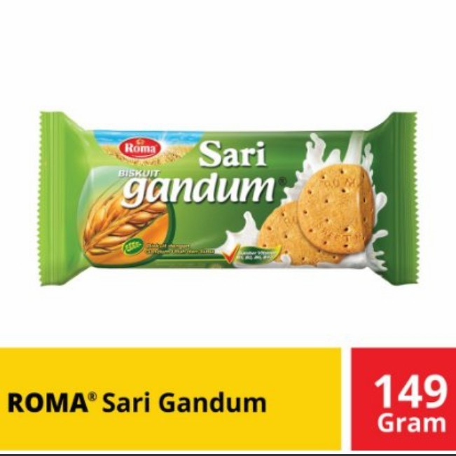 Roma Biskuit Sari Gandum adalah biskuit renyah yang dibuat dari gandum pilihan dan dicampur dengan susu di dalamnya. Biskuit ini selain nikmat untuk disajikan saat-saat santai namun juga mempunyai sejuta manfaat dari gandum.
