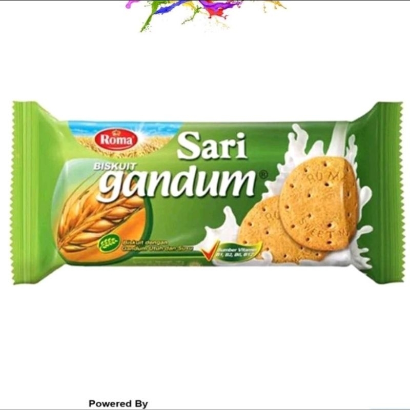 Roma Sari Gandum merupakan biskuit yang terbuat dari gandum pilihan. Biskuit ini juga mengandung susu bergizi, membuatnya lezat dan sehat. Nikmati biskuit bersama teh di sore hari dapat mencerahkan hari Anda.