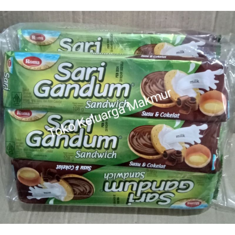 Sari Gandum Sandwich merupakan snack murah yang sehat produksi dari Roma. Mengapa sehat? gandum bisa menjadi snack enak di rumah yang ramah terhadap penderita diabetes (coklat yang terdapat didalam snack ini bisa dibuang / tidak dimakan). Gandum juga tidak memiliki lemak jahat yang dapat membuat gemuk badan (obesitas), menyehatkan jantung dan melawan kolesterol.