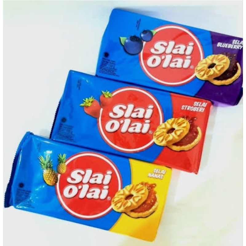biskuit susu dengan selai buah yang diproduksi oleh PT Mayora Indah Tbk. Biskuit ini memiliki tekstur lembut dan gurih, serta mengandung vitamin, mineral, kalsium, dan nutrisi. Slai O'lai tersedia dalam berbagai varian rasa, seperti nanas, stroberi, dan blueberry.