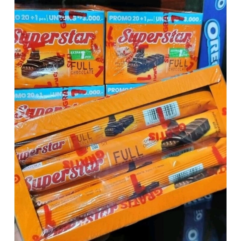 superstar adalah wafer rasa coklat yg banyak di sukai oleh banyak kalangan orang mulai dari anak kecil sampai dewasa karena cita rasanya yg sangat enak dan lezat. Yang membuat wafer Superstar enak dan lezat yaitu wafernya yg dilapisi oleh coklat asli sehingga membuat wafetnya menjadi lebih enak dan lezat