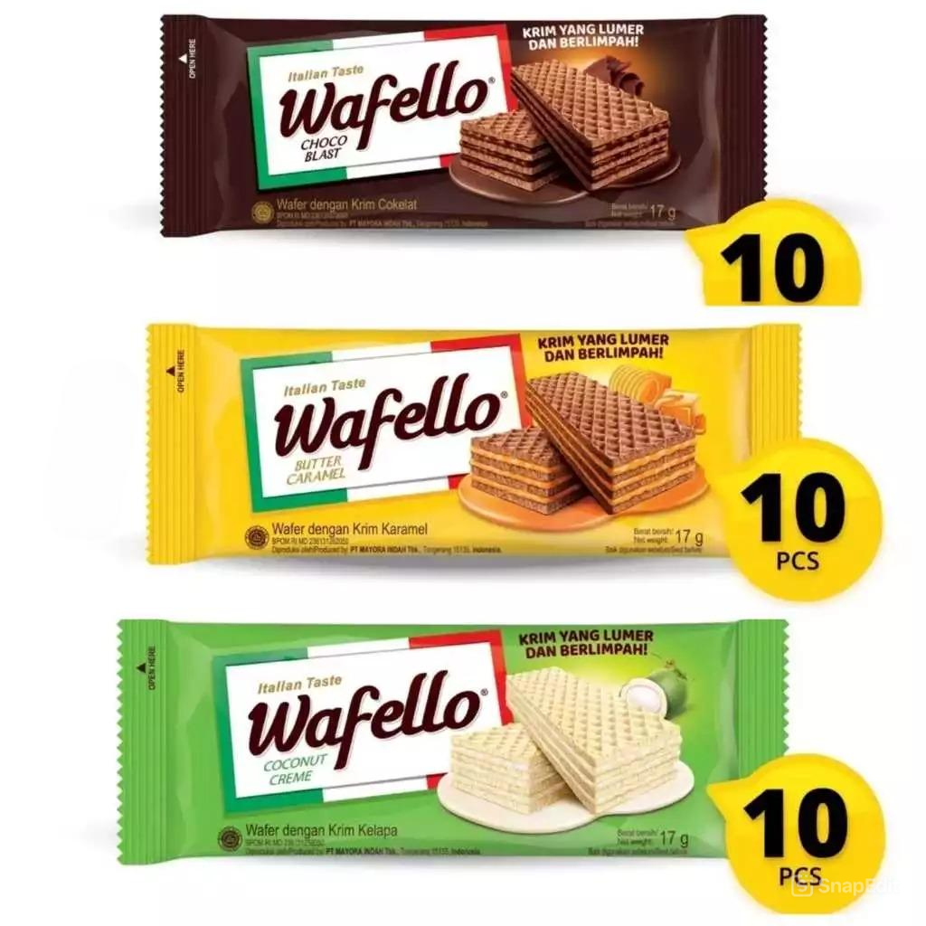 Roma Wafello 17g (10 pcs/pack) adalah wafer varian baru yang diproduksi oleh PT. Mayora, Tbk. Wafello merupakan wafer berlapis cream coklat yang nikmat dan berlimpah dengan citarasa Italia. Ideal dinikmati bersama hidangan teh, susu maupun kopi saat santai. Wafello Delizioso.