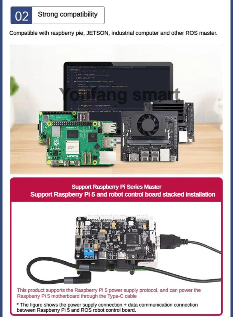 ROS2 RRC Lite Controller with STM32 Power Supply Protocol Integrated IMU 4-Channel Encoder Motor Servo for Raspberry Pi 5 Robot