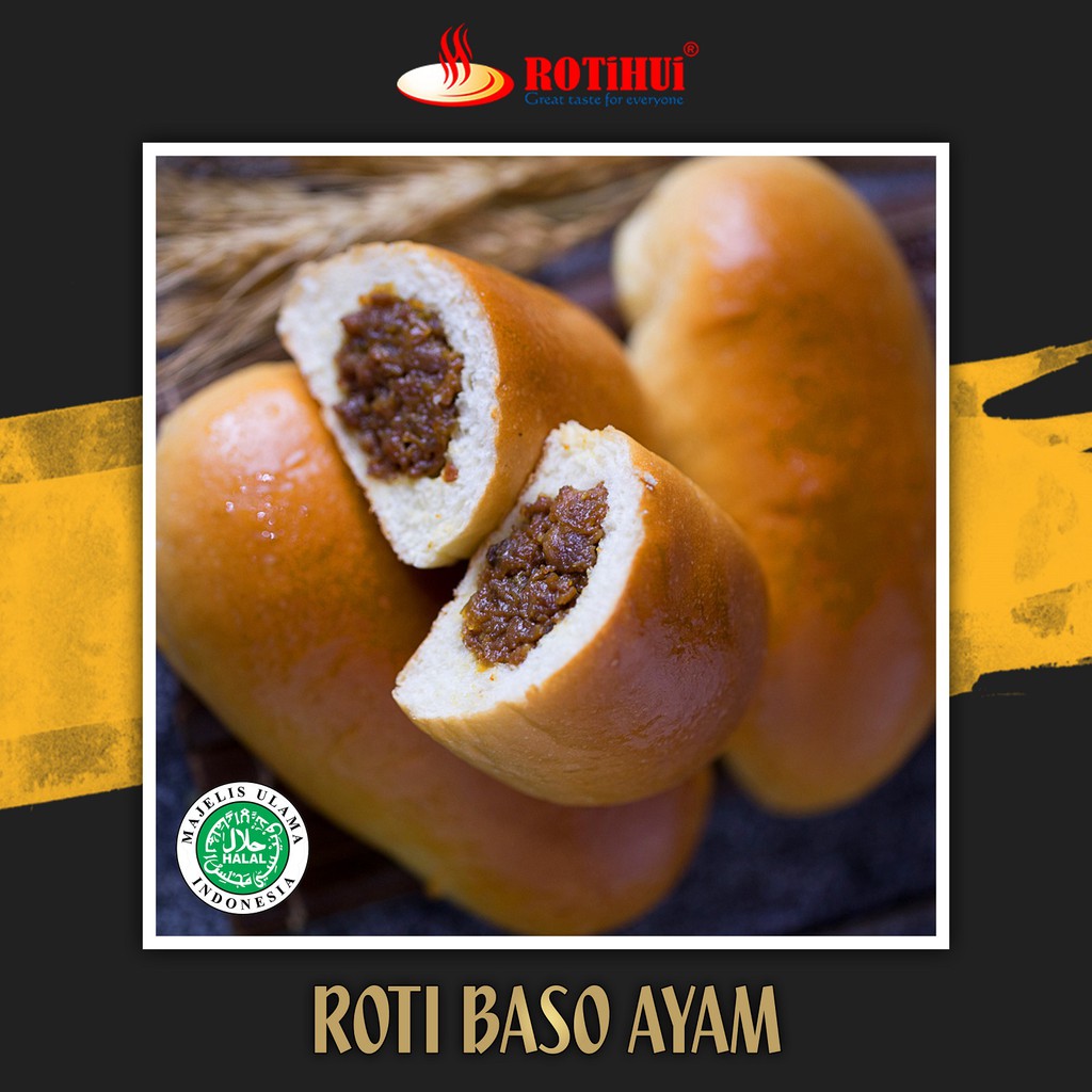 roti baso ayam adalah roti isi ayam cincang dengan bahan pilihan dan daging ayam pilihan tanpa lemak tanpa kulit, daging ayam dan semua produk rotihui bersertifikat halal