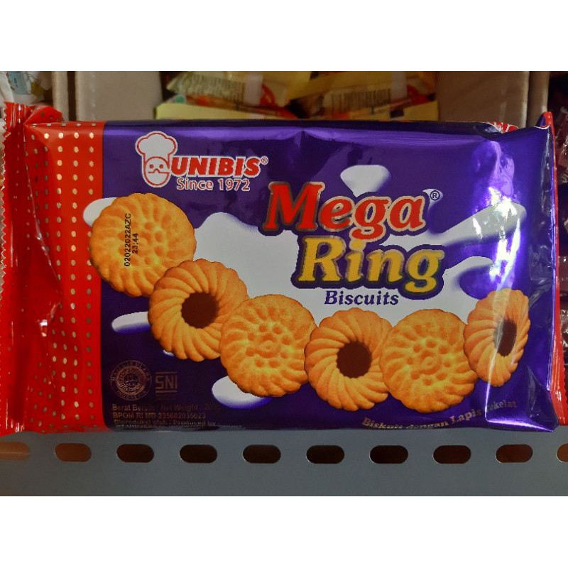 Unibis Mega Ring Biscuits. Biskuit dengan lapis cokelat.
