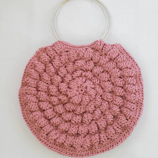 Tas Rajut Motif Bunga Popcorn
