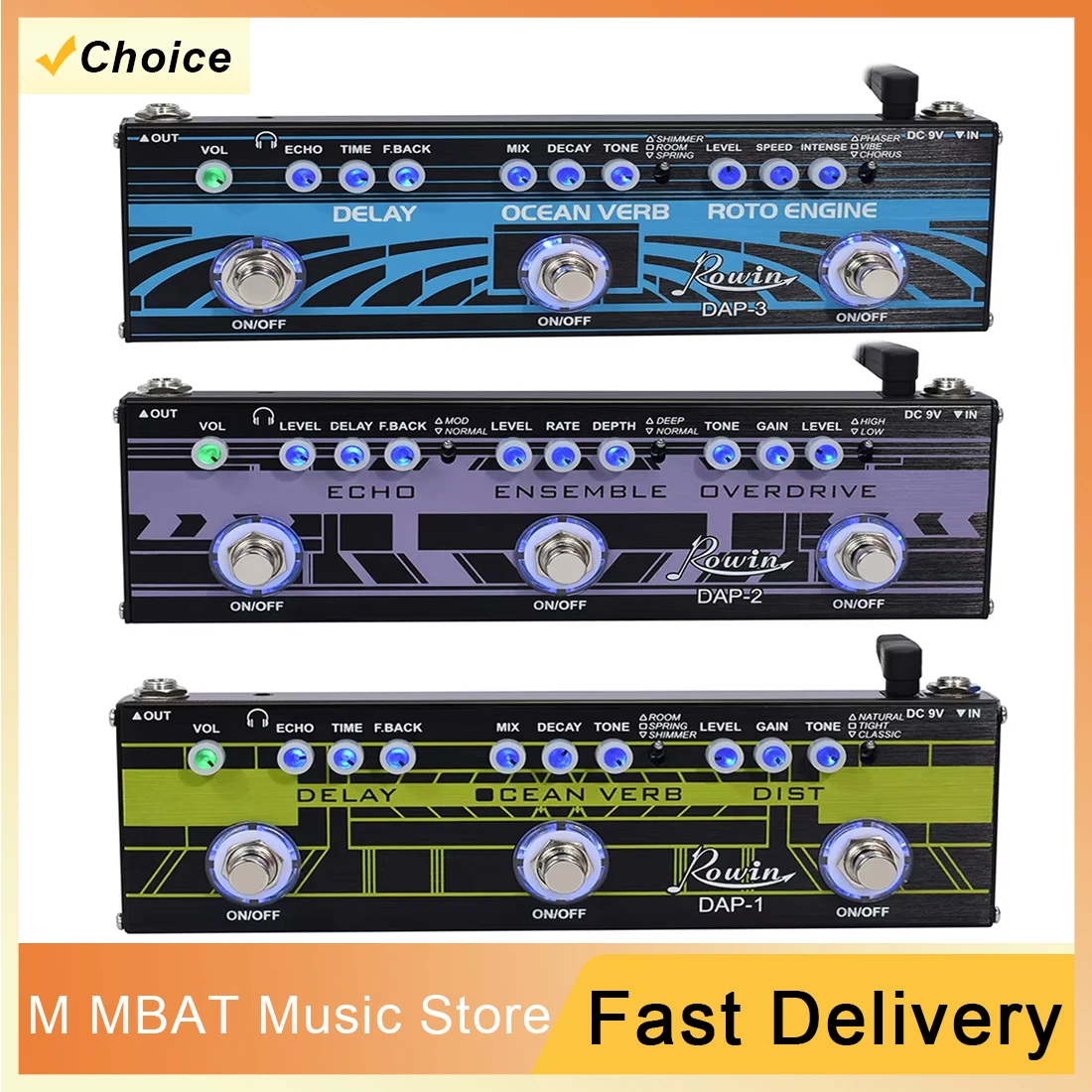 ROWIN DAP-1/2/3 Combination Effects Pedal Delay Reverb Distortion Effect 3 in 1 Pedal Engine Ocean Verb Guitar Accessories