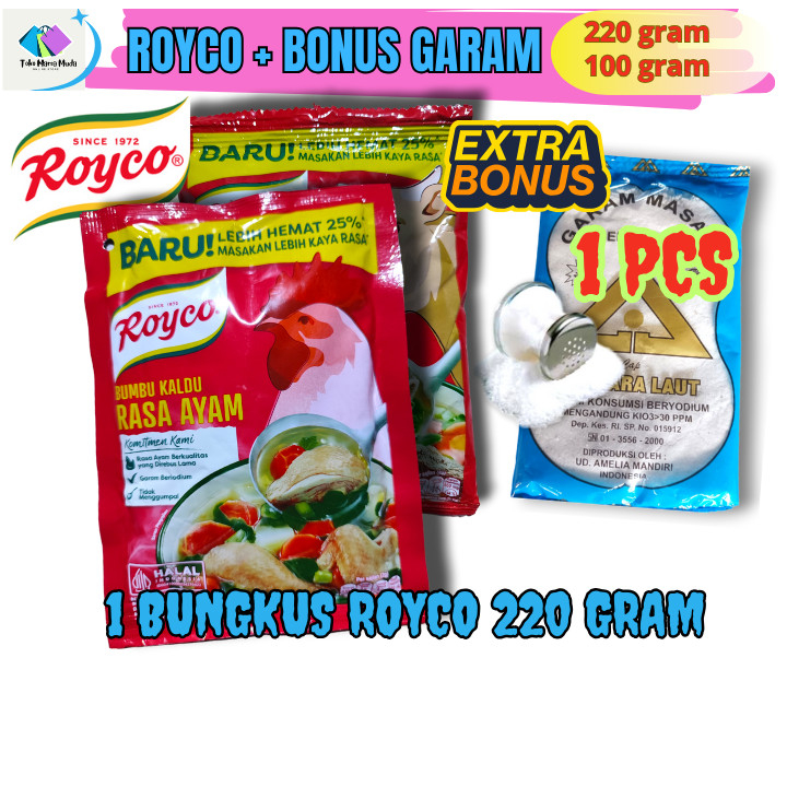 ROYCO 220 GRAM + EXTRA BONUS garam dapur PENYEDAP RASA KALDU AYAM / SAPI ASLI DARI ROYCO