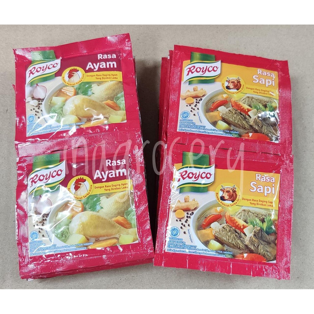 Royco Kaldu Ayam / Sapi dibuat dengan daging ayam/sapi yang direbus lama memberikan kaldu mantap dan rasa ayam/sapi lezat untuk semua masakan.