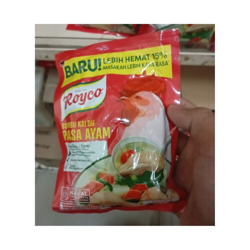 Royco Kaldu Ayam merupakan bumbu penyedap yang terbuat dari bahan-bahan dan rempah pilihan, termasuk daging ayam pilihan yang direbus lama. Memberikan rasa kaldu yang mantap pada masakan Anda. Tambahkan Royco Kaldu Ayam ke dalam masakan rumah. Mudah larut dalam masakan.