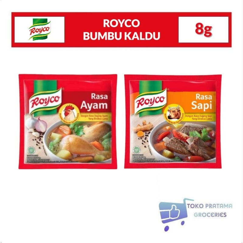 Royco Bumbu Kaldu Ayam/Sapi 12x8g adalah bumbu penyedap rasa yang terbuat dari daging ayam/sapi pilihan dan rempah-rempah alami. Bumbu ini dapat digunakan untuk berbagai masakan, seperti sup, soto, gorengan, dan tumisan.