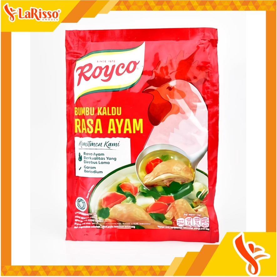 Royco Kaldu Ayam dibuat dengan daging ayam yang direbus lama memberikan kaldu mantap dan rasa ayam lezat untuk semua masakan. Tambahkan Royco Kaldu Ayam ke dalam masakan rumah. Mudah larut dalam masakan dan dibuat dengan daging ayam yang direbus lama sehingga menambah cita rasa ayam lezat di semua masakanmu!