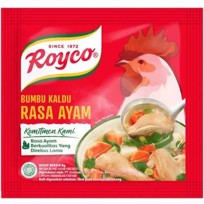 Royco kaldu ayam bumbu penyedap serbaguna yang dapat meningkatkan citarasa masakan Anda.