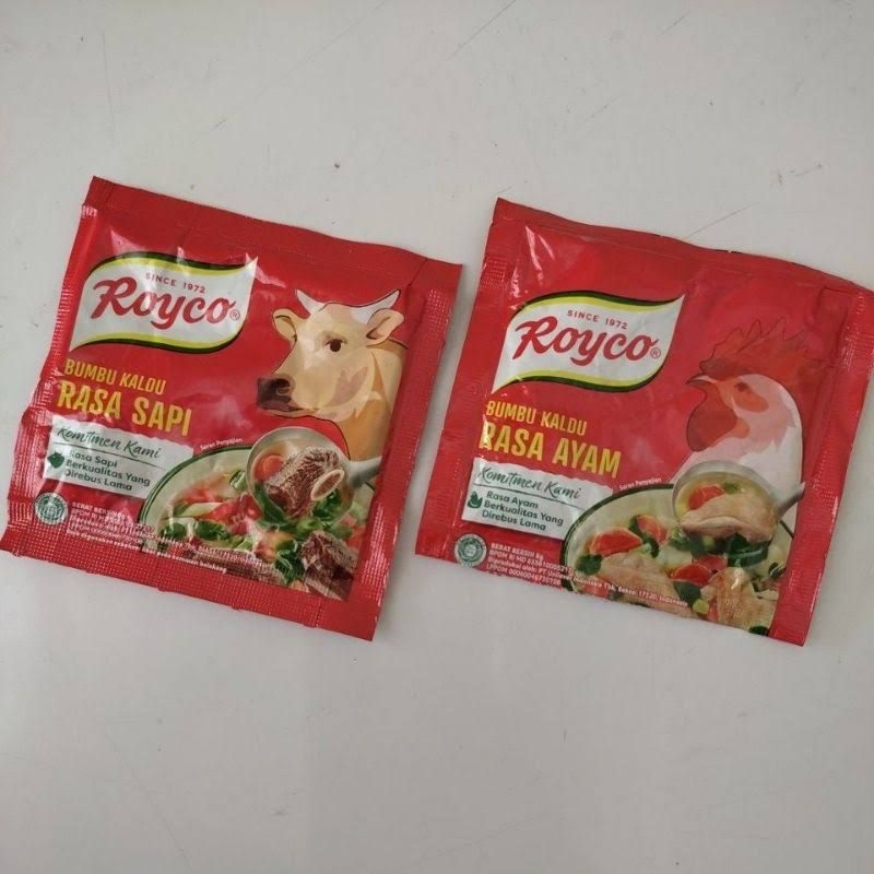 Royco bumbu kaldu rasa ayam dan rasa sapi, isi 9gr dan 8 gr