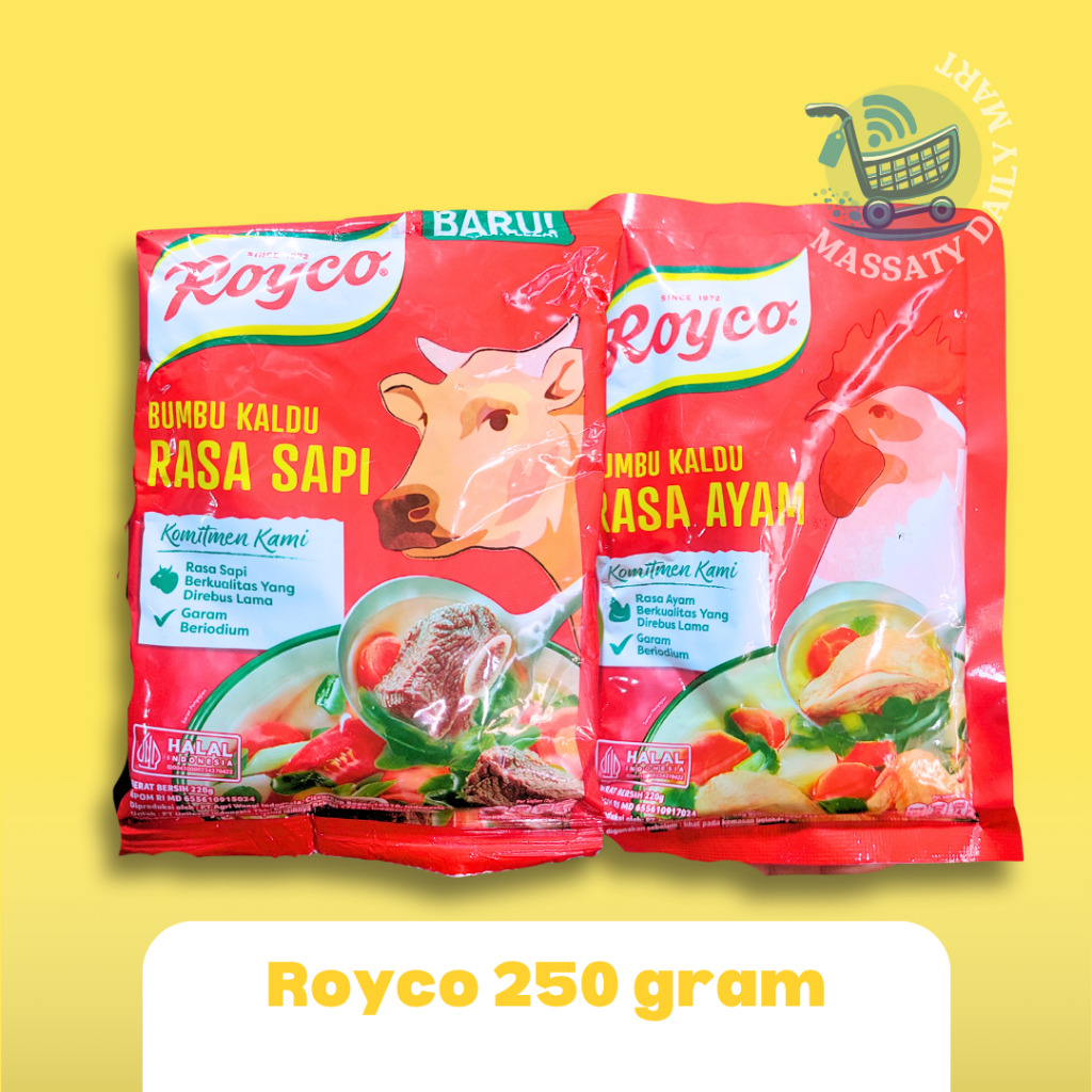 Royco Kaldu Ayam dan Sapi 250 gram adalah bumbu penyedap serbaguna yang terbuat dari daging segar pilihan dan rempah berkualitas. Diformulasikan untuk memberikan rasa kaldu yang kaya dan autentik pada berbagai masakan Anda.