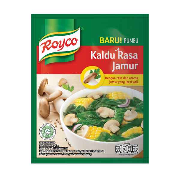 ROYCO KALDU RASA JAMUR 40 GR merupakan bumbu instan rasa kaldu jamur yang gurih membuat masakan semakin meyenangkan dengan cita rasa yang lezat