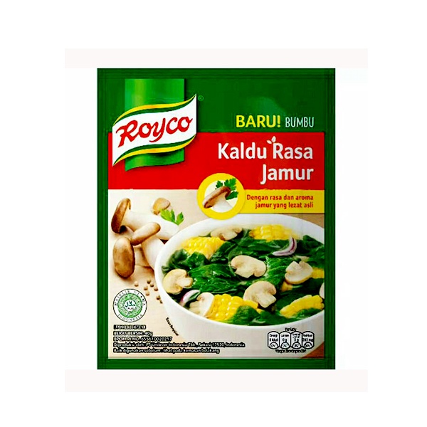 ROYCO KALDU RASA JAMUR 40 GR merupakan bumbu instan rasa kaldu jamur yang gurih membuat masakan semakin meyenangkan dengan cita rasa yang lezat