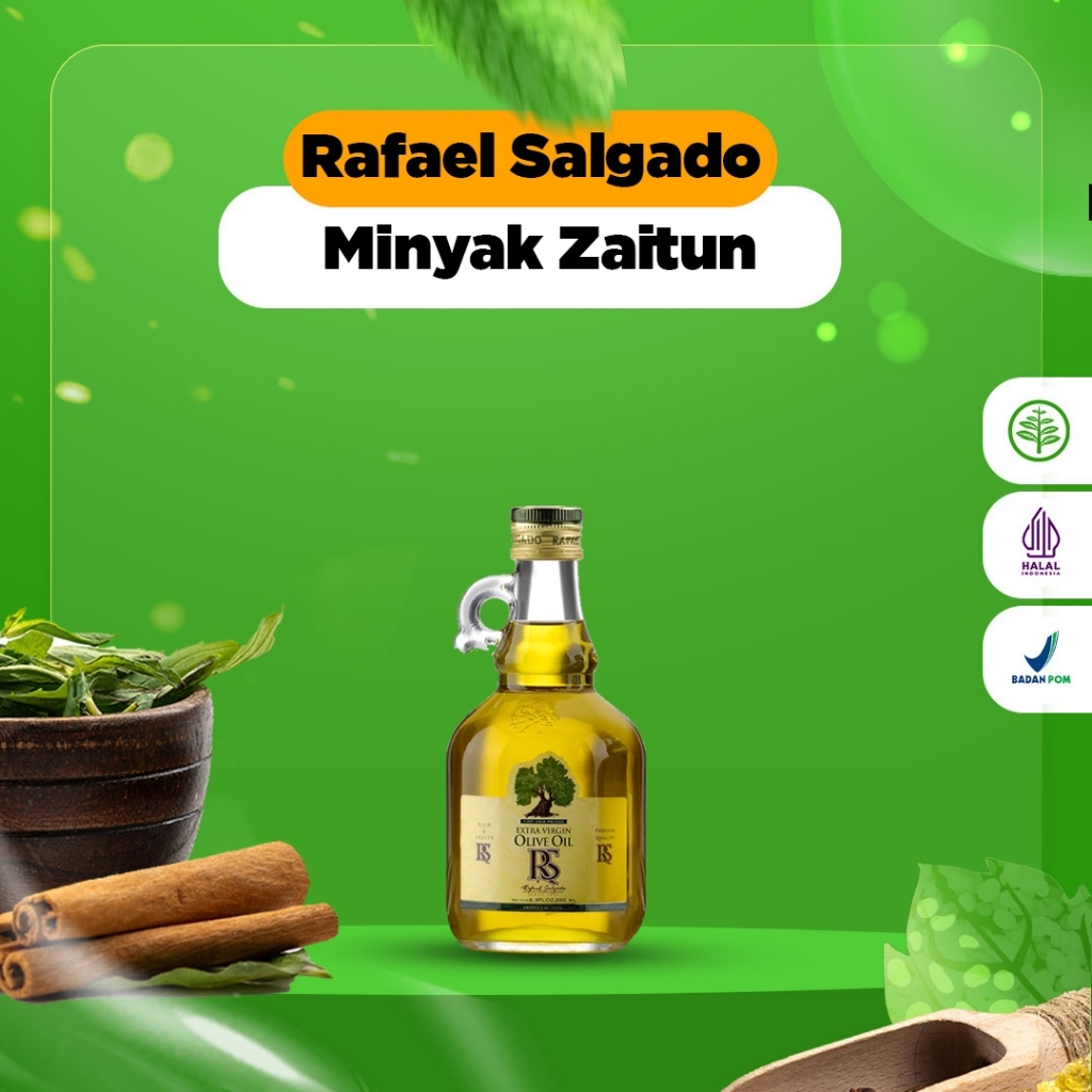 Rafael Salgado adalah pemasok rutin minyak zaitun untuk kerajaan Spanyol. Rafael Salgado Extra Virgin Olive Oil diproduksi tanpa bahan pengawet, Rafael Salgado extra virgin adalah jenis minyak yang paling mudah dicerna dan memiliki sedikit efek pada perut dan pencernaan. Cepat mengenyangkan, Merangsang sekresi pankreas, sebagai anti-oksidan penting karena adanya polifenol dan vitamin E.