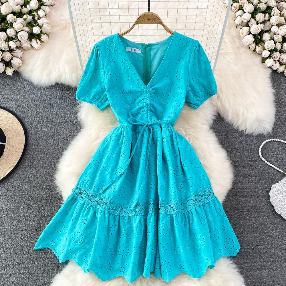 RUGOD Французский колокольчик First Love Sweet Forest Hook Flower Полое платье трапециевидной формы с завязками на талии Лето 2022 One Size
