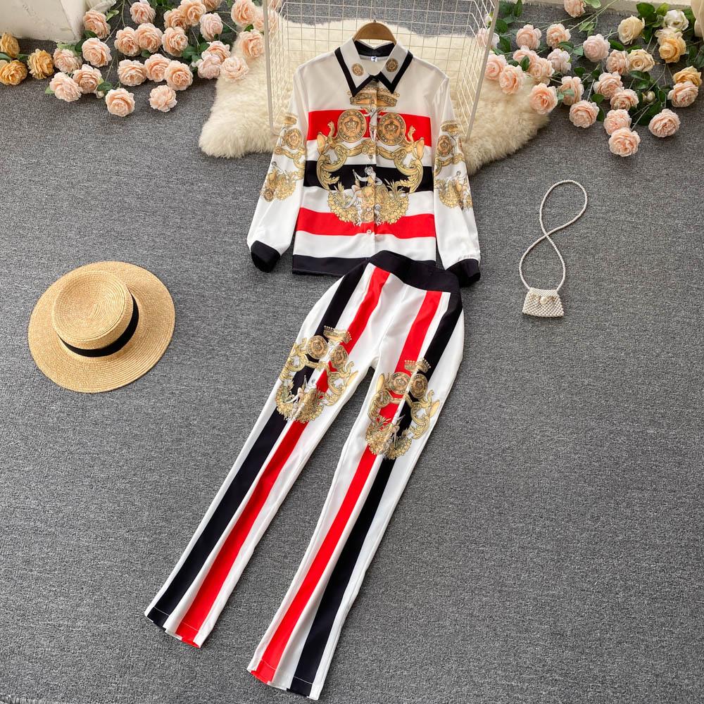 RUGOD, ранняя весна, новая модная рубашка с лацканами и темпераментным принтом, женская облегающая повседневная рубашка на тонкие ноги, костюм из двух предметов