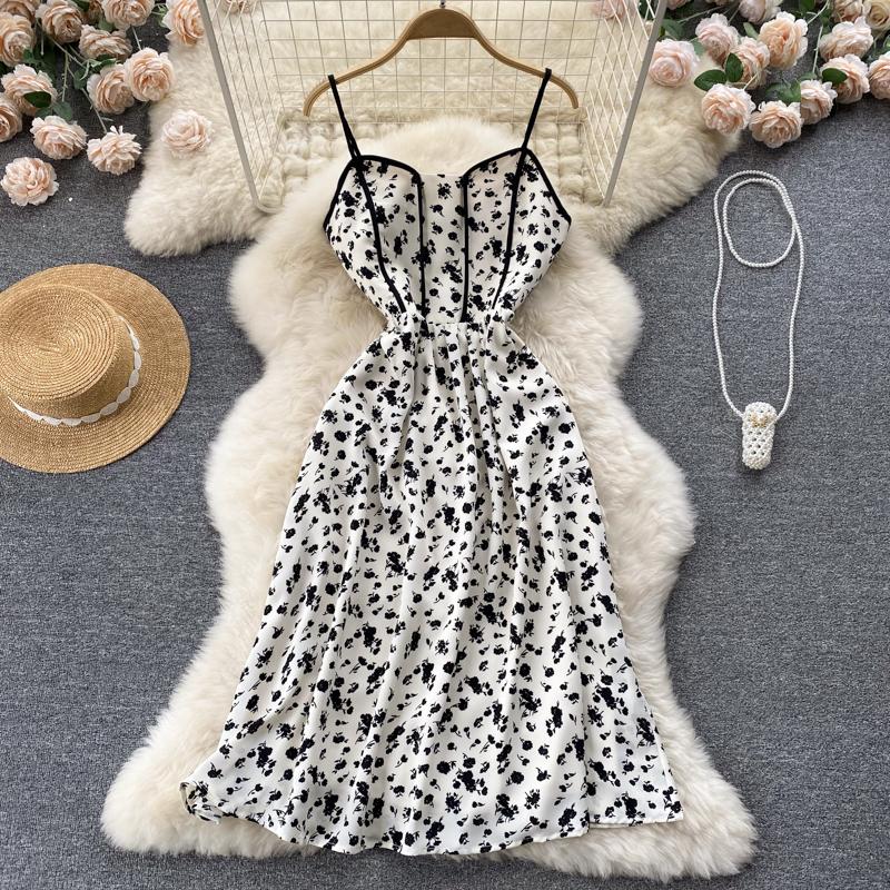 RUGOD 2022, новое летнее платье в стиле ретро, нежное милое платье на подтяжках с цветочным принтом, платье средней длины с нишевым принтом и колокольчиком