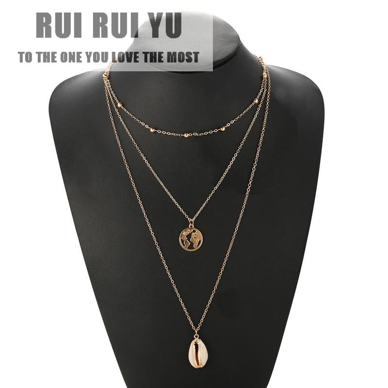 RUI RUI YU Мужчины и женщины Ожерелье из сплава Креативное Ретро Форма Раковины Полая Карта Кулон Многослойное Ожерелье