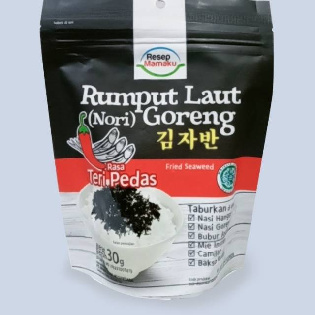 Rumput Laut (Nori) goreng Resep Mamaku adalah rumput laut yang digoreng (bukan dipanggang), dengan citarasa uang khas & unik. Bahan baku Rumput Laut asli dari Korea