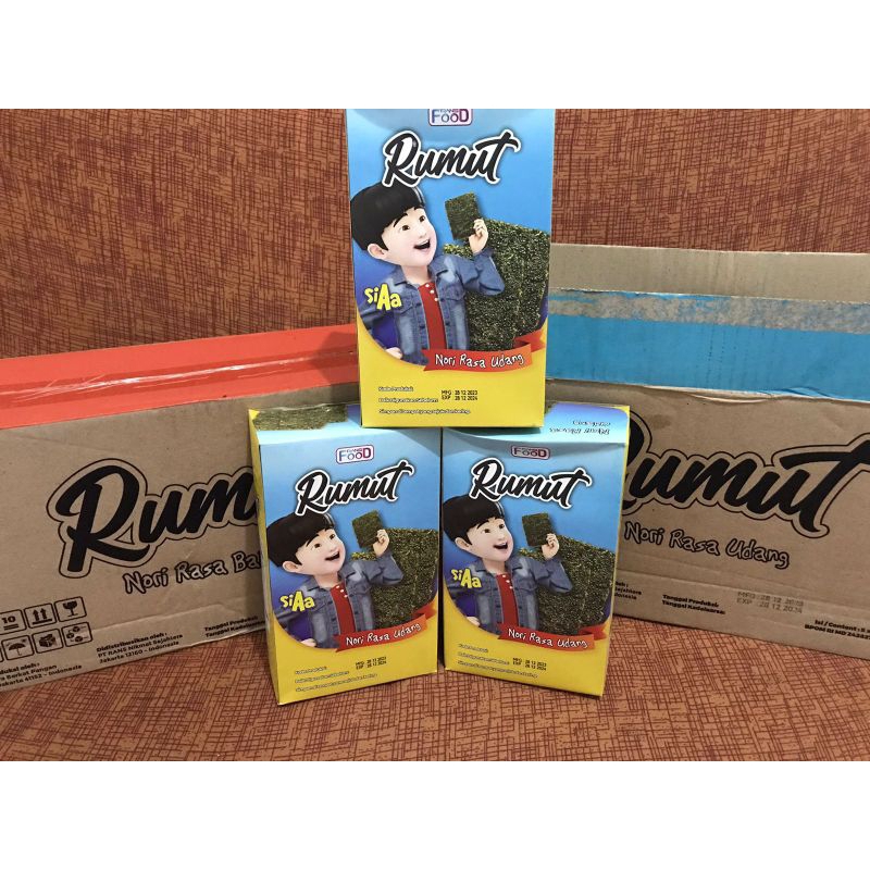 RUMUT RANS 1 KARTON ISI 5 BOX KEMASAN 10 G NORI RUMPUT LAUT RASA UDANG AYAM BAWANG BALADO