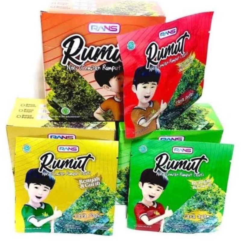 Ini adalah cemilan snack rumput laut alias nori didistribusikan khusus PT RANS Nikmat Sejahtera. Berupa lembaran2 rumput laut kering olehan dgn minyak nabati dan di tabur bumbu2 rasa yg enak. Dikemas dalam sachet2 individu berisi nori bernetto 4gr. Dijual dalam kotak berisi 12 sachet. Beratribut BPOM RI dan Halal MUI, silahkan di order. Varian: 1. Rasa Ayam 2. Rasa Sapi 3. Rasa Pedas