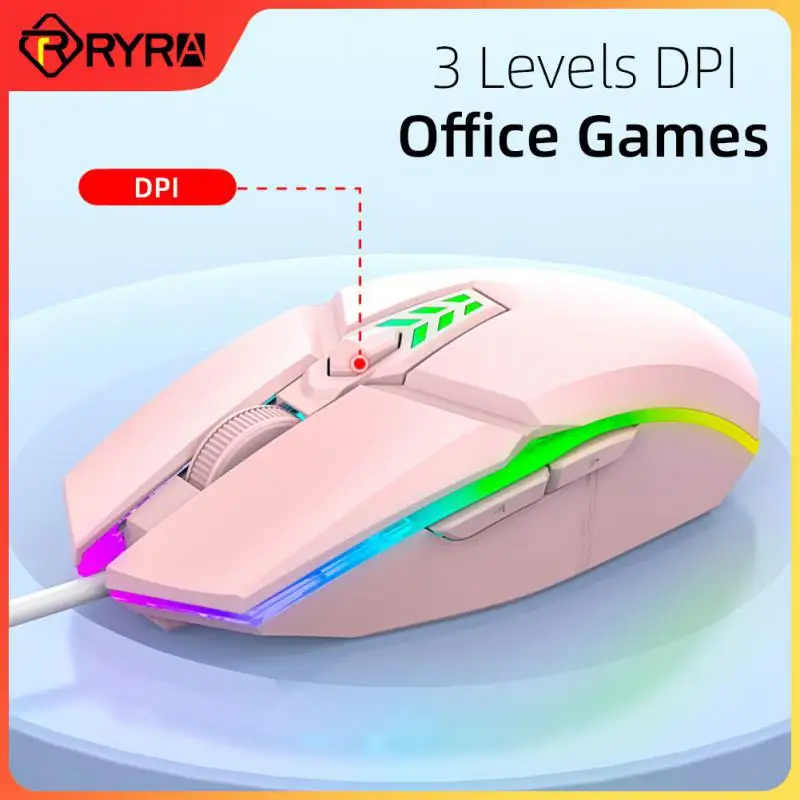 RYRA светящаяся игровая проводная мышь, 6 клавиш, компьютерная офисная Бесшумная или звуковая мышь, гибкая и стабильная мышь