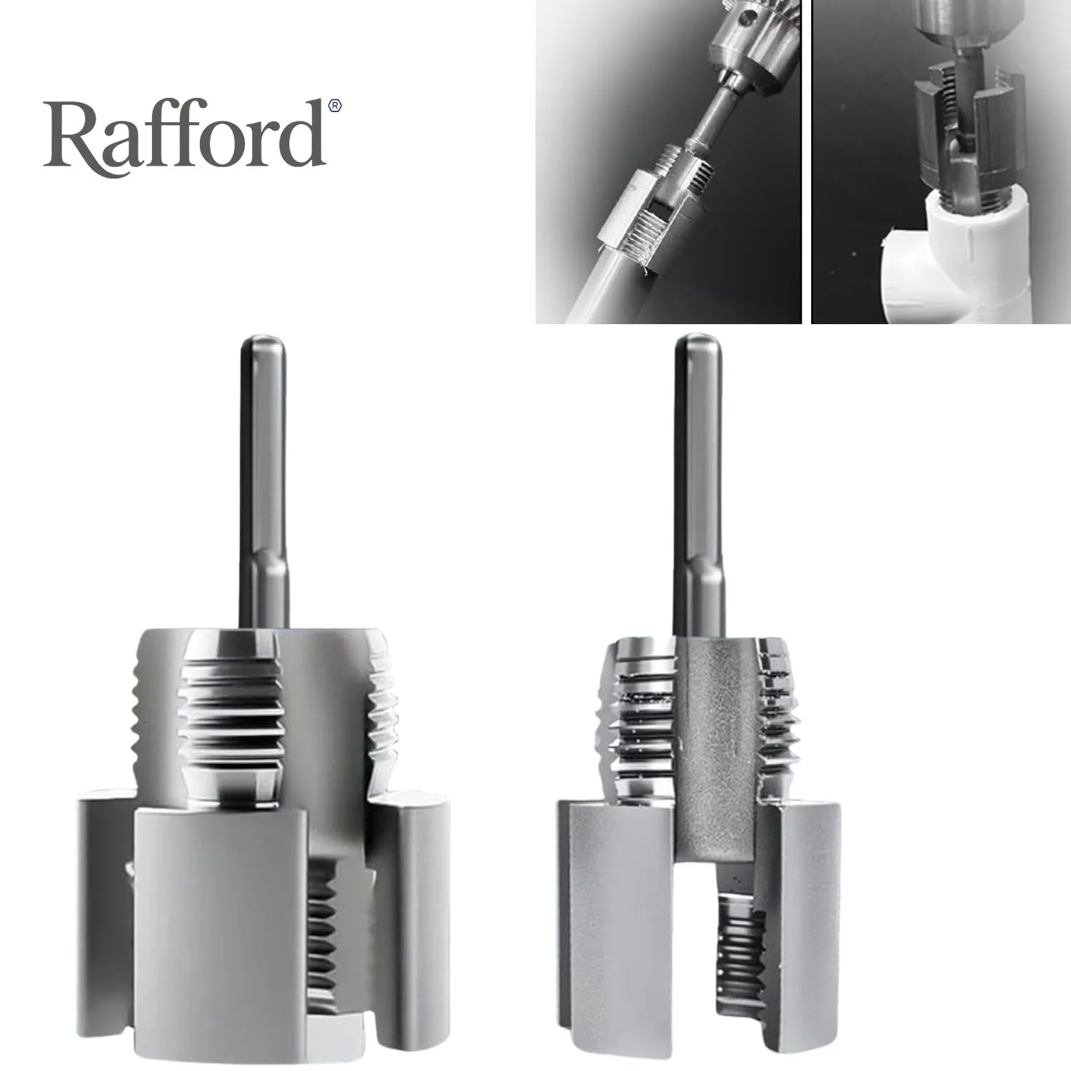 Rafford 2PCS Integrated Internal and External Pipe Threading Tool - for PVC Plastic Pipe Thread Cutting, 1/2" + 3/4" Silver