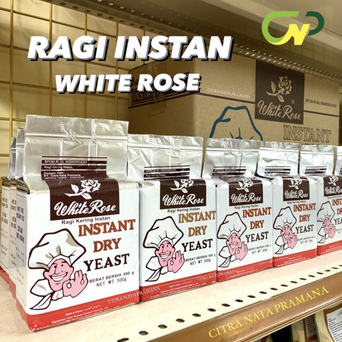 White rose Ragi instant merupakan ragi dengan daya fermentasi kuat dan stabil, daya mengembang sangat kuat, serat roti menjadi halus dan lembut,menghasilkan aroma roti yang khas