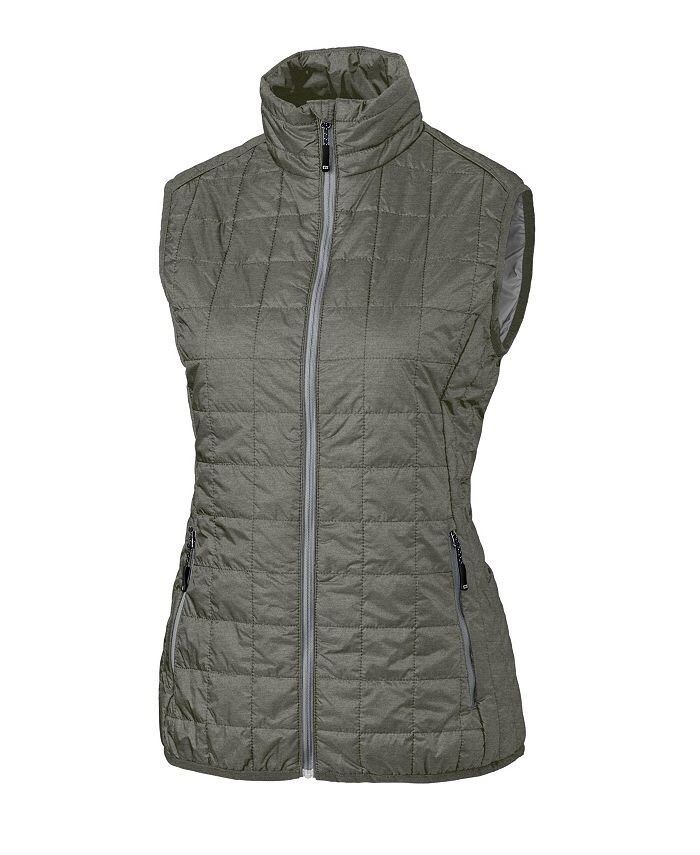 Rainier PrimaLoft женский плюс размер эко-утепленный жилет-пуховик на молнии с полной молнией Cutter & Buck, цвет Poplar melange, Серый, Rainier PrimaLoft женский плюс размер эко-утепленный жилет-пуховик на молнии с полной молнией Cutter & Buck, цвет Popl