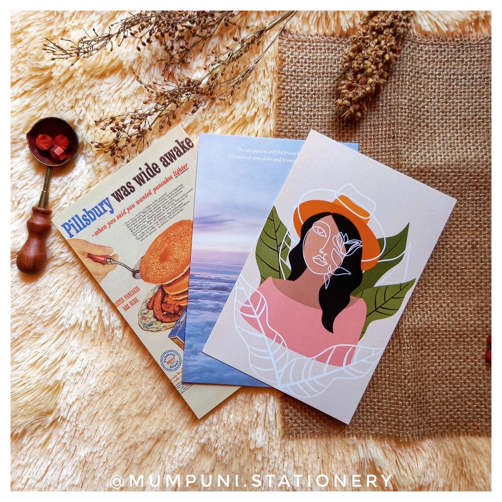 Sekarang jamannya pake kartu pos yang estetik untuk kamu kasih pesan ke orang tersayang meskipun tidak melalui pak pos, ataupun sekedar koleksi, atau untuk bahan-bahan journaling kamu.