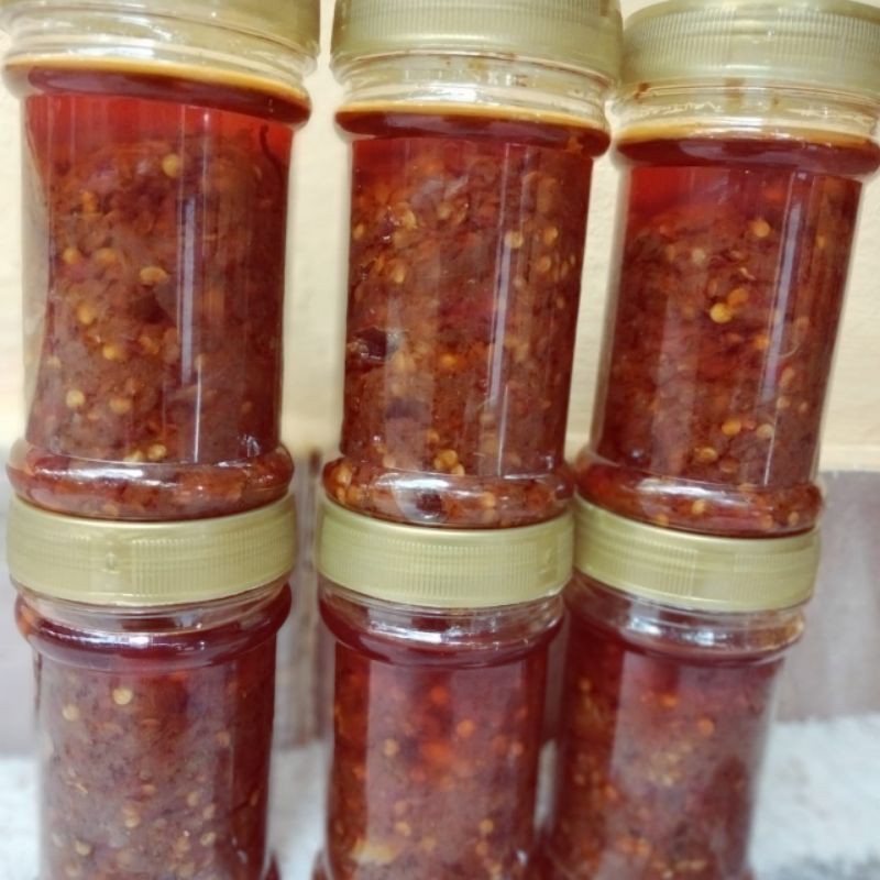 Dengan bahan cabe, cumi, bawang merah, dan bawang putih.