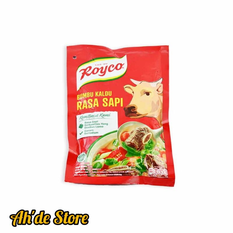 Royco Kaldu Sapi merupakan bumbu pelezat masakan yang terbuat dari bahan-bahan dan rempah pilihan, termasuk daging sapi pilihan yang direbus lama. Memberikan rasa kaldu yang mantap pada masakan Anda. Tambahkan Royco Kaldu Sapi ke dalam masakan rumah. Mudah larut dalam masakan.