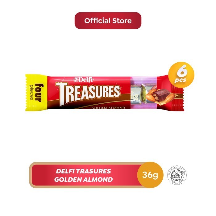 Ready, Silahkan diorder Delfi Treasures Almond, cokelat yang terbuat dari bahan pilihan yang di dalamnya terdapat kacang almond yang gurih dan lezat.