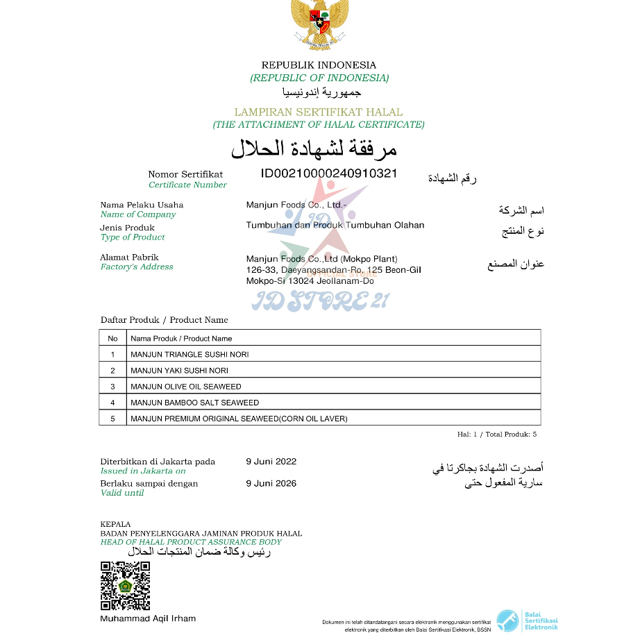 Ready Manjun Yaki Sushi Nori Rumput Laut Seaweed Halal SH-30-10-23 MOHON DIBACA SEBELUM ORDER !! PRODUK HALAL Stoknya ready. Produknya HALAL MUI ( Sertifikat Halal MUI di Foto slide ke 7 & 8) Manjun Yaki Sushi Nori Rumput Laut Seaweed Jual kemasan 5 Lembar, 10 lembar, 20 Lembar dan tersedai Paket beserta penggulung sushinya Silahkan pilih di variasi produk SUSHIMAT = PENGGULUNG SUSHI / MAKISU, Jadi kalau order variasi + sushimat berarti sudah beserta sushimatnya/ penggulung sushi. ketentuan KEMASAN : 5 lembar 10 Lembar 20 Lembar Kemasan Ori Pabrik isi kurang lebih 50 Lembar Manjun Yaki Sushi Nori Exp : Masih Sangat Lama Ukuran : 21 x 19 Cm Tersedia Paket Manjun + Sushimat, Dalam Varian paket sudah terdapat sushimat/alat penggulung sushi Spesifikasi : * Nori Merek Manjun * Produk Korea * Rasa Original / Sudah Roasted * Lembaran tebal beda dari pada yg China * Tidak mudah hancur * Isi 50 lembar per pack (jika membeli Kemasan asli) * Kualitas Premium - Fast respon jam kerja Senin - Sabtu pukul 8.00 - 16.00, Minggu atau hari libur Off - Mohon mencantumkan warna/gambar/varian pilihan dan cadangannya (jika ada) di kolom pemesanan ya. Jika tidak mencantumkan pilihan, maka akan kami kirimkan sesuai stok yang ready!!! - Pengiriman pada Hari yang sama (malamnya). - Jika barang yang di pesan kosong dan tidak ada respon selama 1x24 jam maka akan di kirim secara random. - Periksa kembali NOMOR HP (TELP) & ALAMAT LENGKAP. Guna mempercepat dan memperlancar pengiriman. - BARANG YANG SUDAH DI BELI TIDAK BISA DI KEMBALIKAN. - Gudang kita ada di Beberapa Alamat Jabodetabek... Jadi pengiriman tidak selalu sesuai alamat toko ini yaaa.. >>>> MEMBELI = SETUJU